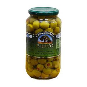 Оливки Bravo Гіганти фаршировані перцем 1000 г,(суха вага 550 г) 6 шт/ящ